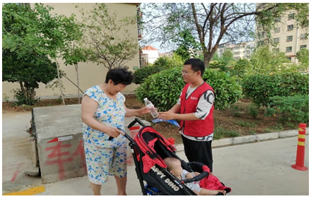 實(shí)踐活動最后,為助力文明城市建設(shè),服務(wù)隊(duì)員們走進(jìn)社區(qū)開展了走訪慰問、垃圾清理、向路過老人發(fā)放飲用水等。隊(duì)員們一邊和老人們交流談心,一邊清掃地面。干凈的街角,老人誠摯的謝意,讓隊(duì)員們感受到了勞動的快樂。