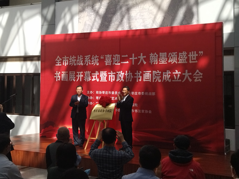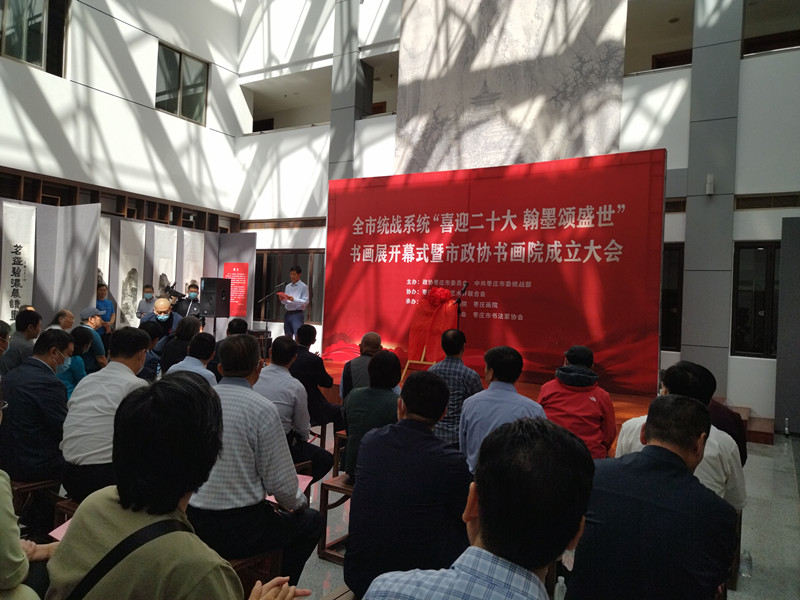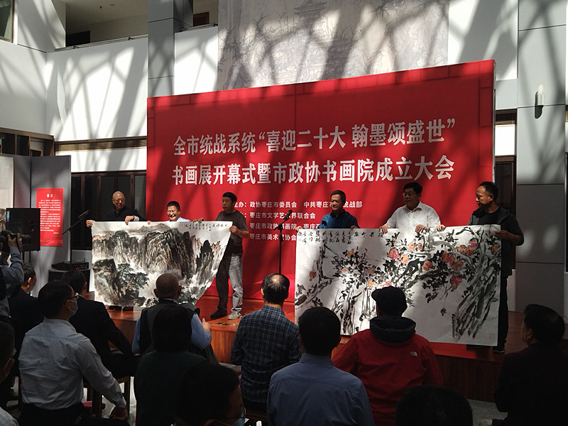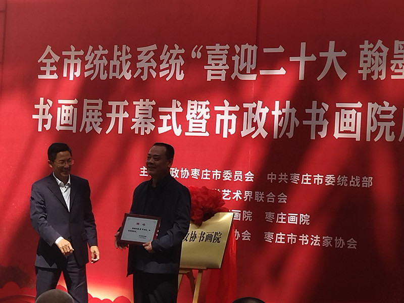 喜迎二十大,翰墨頌盛世。為表達(dá)全市統(tǒng)戰(zhàn)系統(tǒng)和廣大政協(xié)委員紅心向黨、共筑復(fù)興的強(qiáng)烈心聲, 9月23日,山東省棗莊市統(tǒng)戰(zhàn)系統(tǒng)“喜迎二十大翰墨頌盛世”書(shū)畫(huà)展開(kāi)幕式暨棗莊市政協(xié)書(shū)畫(huà)院成立大會(huì),在棗莊市政協(xié)機(jī)關(guān)舉行。本次展覽由政協(xié)棗莊市委員會(huì)、中共棗莊市委統(tǒng)戰(zhàn)部主辦,棗莊市文學(xué)藝術(shù)界聯(lián)合會(huì)協(xié)辦,棗莊市政協(xié)書(shū)畫(huà)院、棗莊畫(huà)院、棗莊市美術(shù)家協(xié)會(huì)、棗莊市書(shū)法家協(xié)會(huì)承辦,并出版了展覽作品集。