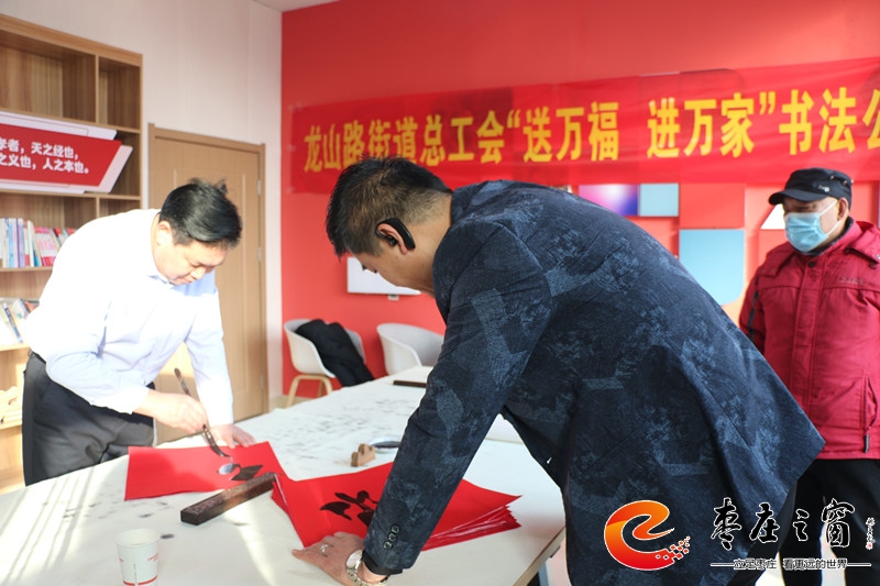 “給大家送‘!!”伴隨著新年的祝福,龍山路街道總工會的工作人員們正將書法家們寫好的一張張福字雙手遞給在場的職工。1月16日上午,市中區(qū)龍山路街道總工會在公勝街紅色驛站組織開展“送萬福 進萬家”書法公益活動,邀請省書法家協(xié)會的4位書法家代表,在活動現(xiàn)場手寫福字和對聯(lián),為廣大職工群眾以及轄區(qū)企業(yè)送去新春的祝福和問候。