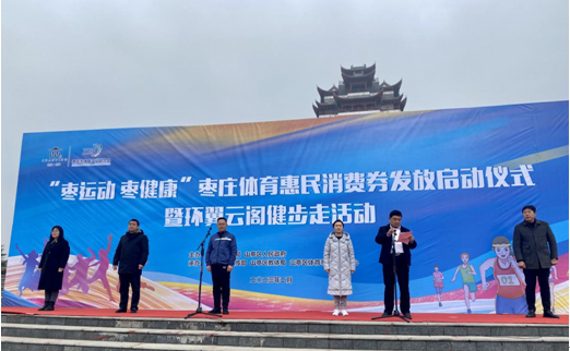 為進一步拉動體育消費,擴大體育市場供給,促進體育產業(yè)活力,吸引更多群眾參與全民健身運動,2月10日上午10:00,“棗運動 棗健康”棗莊體育惠民消費券發(fā)放啟動儀式暨環(huán)翼云閣健步走活動在山亭區(qū)翼云閣廣場成功舉辦。