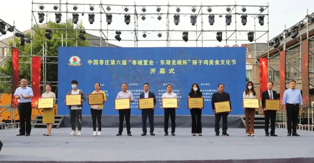開(kāi)幕式上,中國(guó)飯店協(xié)會(huì)副會(huì)長(zhǎng)、中國(guó)飯店協(xié)會(huì)名廚委員會(huì)主席石萬(wàn)榮發(fā)來(lái)了祝賀視頻。企業(yè)家代表山東棗城置業(yè)有限公司董事長(zhǎng)殷允夷致賀詞。與會(huì)領(lǐng)導(dǎo)分別為“全雞宴”美食賽獲獎(jiǎng)團(tuán)隊(duì)、首屆“慢品市中”美食評(píng)選獲獎(jiǎng)單位、市中區(qū)文化產(chǎn)業(yè)發(fā)展突出貢獻(xiàn)獎(jiǎng)獲獎(jiǎng)單位頒獎(jiǎng),并共同啟動(dòng)第六屆辣子雞美食文化節(jié)。